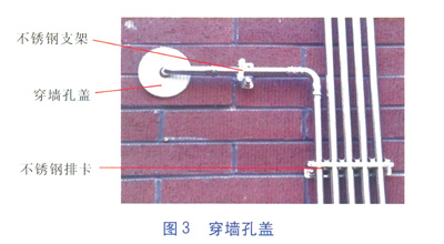 为避免套管与建筑物间的防水材料外漏影响整体美观,在室内外穿墙套管端口各增加一只穿墙盖板(见图3)。